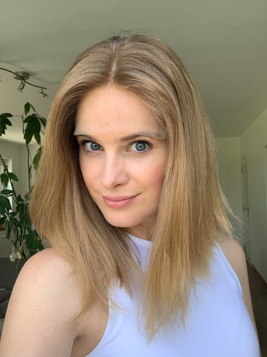 Regular price €1.725,00Regular priceUnit price / perSale price €1.725,00Carolin is a rare gem — made from natural, unprocessed very light blond hair, the hair is exceptionally light and soft, with a beautiful ashy root color added for a natural shadow effect. It dries in soft curls but can also be styled sleek and smooth with our Steampod, keeping its healthy texture. Finished with a bleached hairline for a seamless look