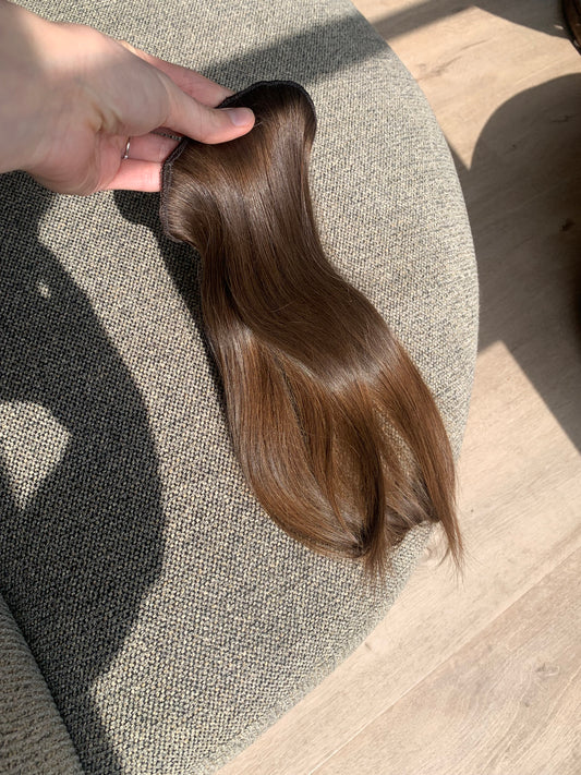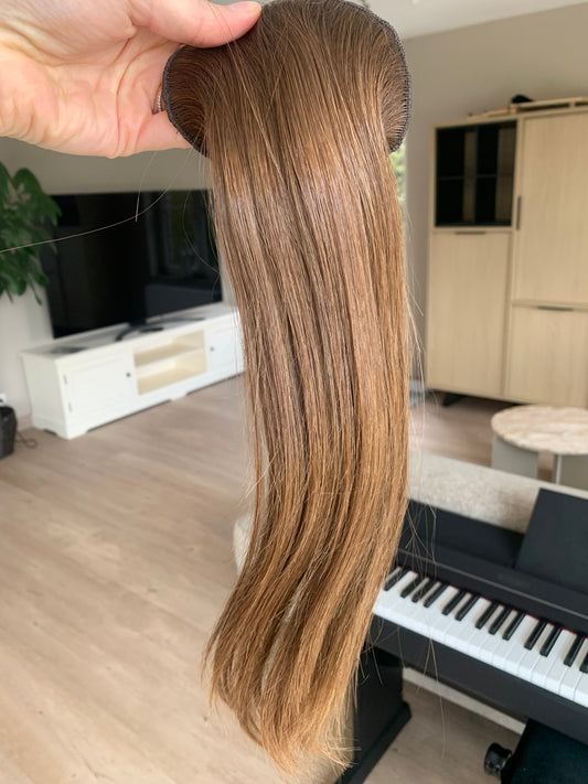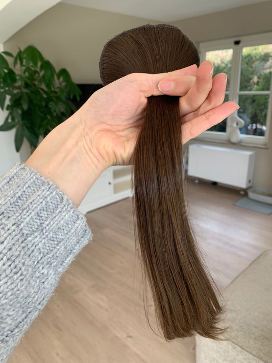 Our solution uses only Slavic hair which is naturally fine, silky and smooth, giving our ponytail toppers a soft and luxurious texture. The natural shine, movement and texture of Slavic hair makes our ponytail toppers look indistinguishable from your hair and designed to seamlessly blend with your existing hair.