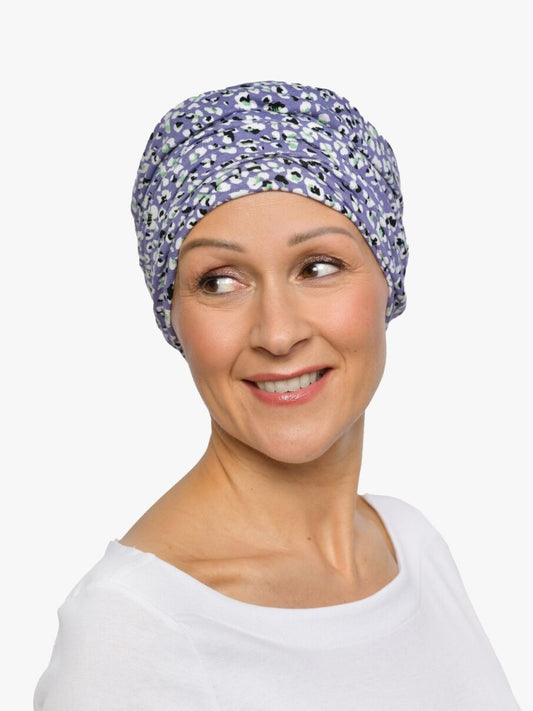 Regular price €43,95Regular priceUnit price / perSale price €43,95Looking for the perfect hat to bathe your skin in softness after a cancer treatment or when facing hair loss due to alopecia? Darling's the one. The colorful print will suit any skin type: the lavender blue hues make cold types radiate, while the little green accent flatters warmer types. Wear with true blue, purple, white or green and get ready to beam.