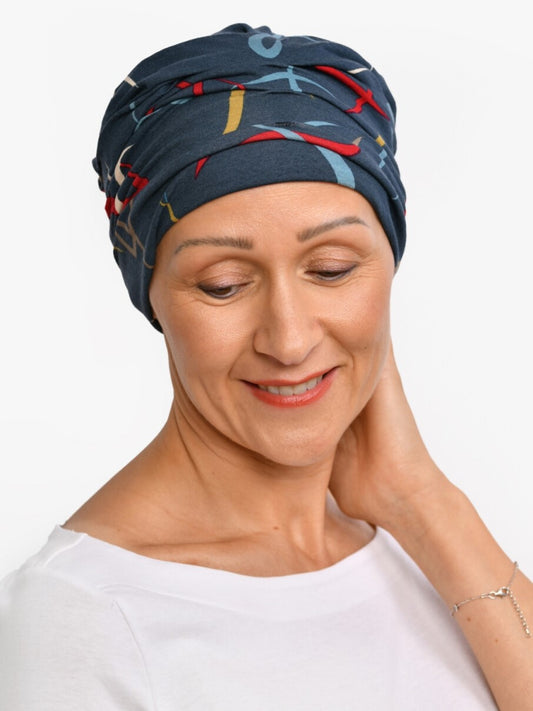 Regular price €43,95Regular priceUnit price / perSale price €43,95Name one person that doesn’t look good in denim blue. This super soft chemo hat ‘Play’ proves that blue beats the blues. The playful print with its bright, joyful colours gives your outfit a real fashion touch and your eyes that extra sparkle. Combine this beauty with your favourite jeans or funky fresh colorful outfit.