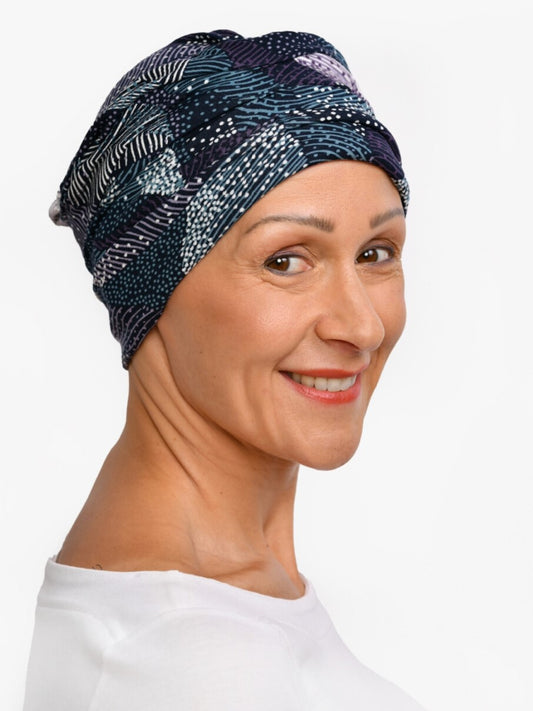 Regular price €43,95Regular priceUnit price / perSale price €43,95The Twilight chemo hat is a rare treat. It fits so beautifully and feels so soft, making it the perfect confidence booster. The combination of blue tones with crisp white adds clarity to your skin tone and will bring even the simplest outfits to life. No doubt about it: this cancer tuban is bang on trend for this season!
