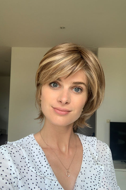 Regular price €625,00Regular priceUnit price / per€700,00Sale price €625,00Introducing the Nathalie Wig by NJ Création, a short funky layered bob. This modern, edgy wig is made with Moovie Hair, an innovative blend of human hair and synthetic fibers. This unique mix gives the bob a natural look and feel while remaining lightweight and easy to style. The textured layers create volume and movement, making it a bold choice for those seeking a youthful, fresh vibe.