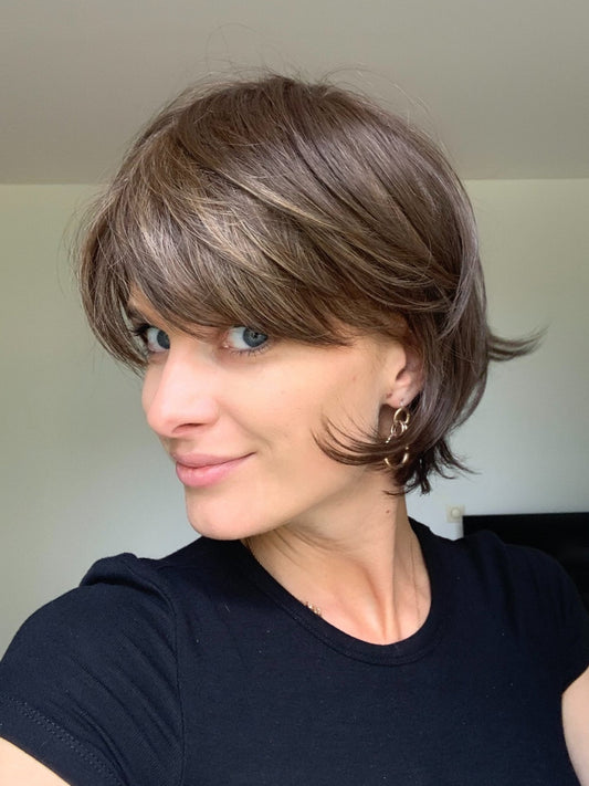 Regular price €475,00Regular priceUnit price / perSale price €475,00The Nathalie Easy brush is a fun little wig with textured layers that give it volume and movement, offering a bold, dynamic look. Made from high-quality fibers, it’s easy to style and maintain, providing a natural appearance with minimal upkeep. Perfect for individuals dealing with hair loss due to alopecia, cancer treatments, or thinning hair, this layered bob combines both fashion and function, ensuring you feel confident and stylish every day. Available in multiple colors, this cute little bob is a must-have for those seeking a fresh, youthful vibe!