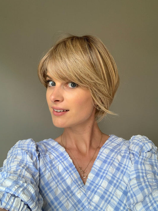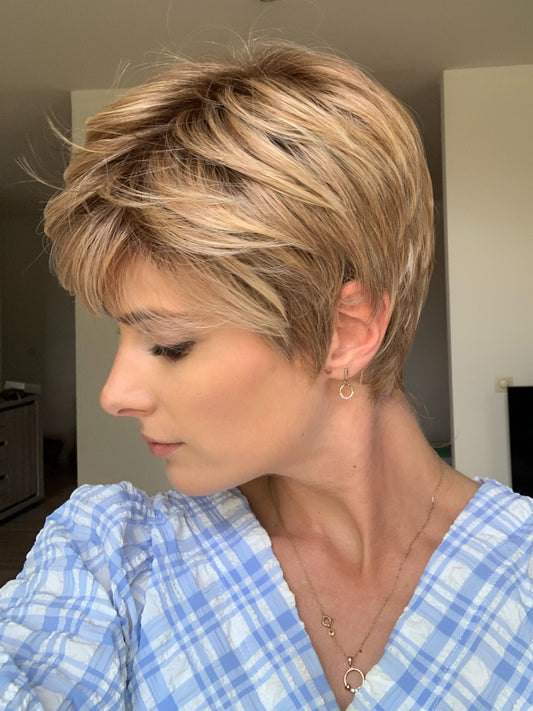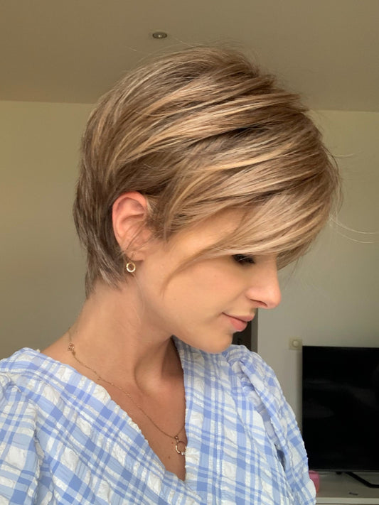 Regular price €625,00Regular priceUnit price / perSale price €625,00Looking for a short low-maintenance wig? The heat-friendly synthetic Celine wig offers a stylish, breathable, and realistic option to help you feel confident and comfortable. 100 % handtied and lightweight cap with stretch for optimal comfort.