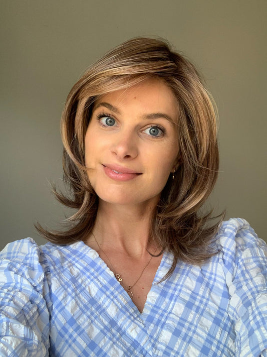 Say goodbye to bulky heavy wigs and hello to everything you ever wanted in wig. Feather light silky strands of hair that is so light it moves when you do. Feather swept bangs that perfectly hand knotted top and an undetectable hair line that can part anywhere or brush.
