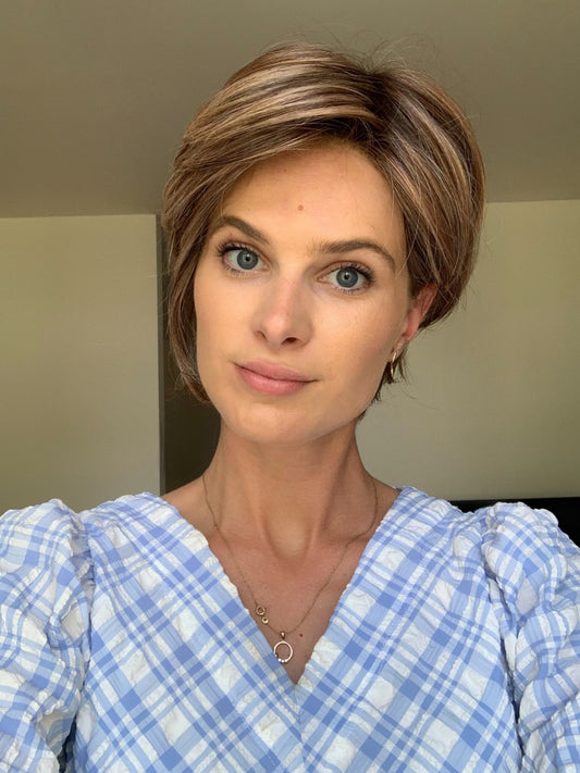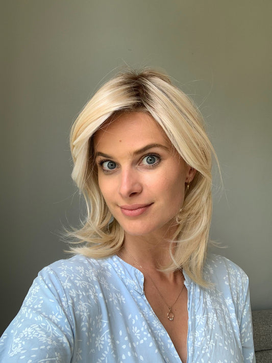 Say goodbye to bulky heavy wigs and hello to everything you ever wanted in wig. Feather light silky strands of hair that is so light it moves when you do. Feather swept bangs that perfectly hand knotted top and an undetectable hair line that can part anywhere or brush.