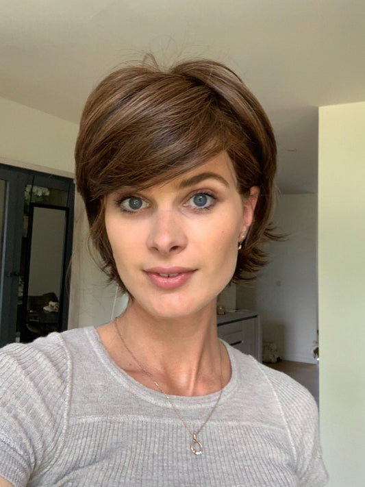 Regular price €575,00Regular priceUnit price / per€625,00Sale price €575,00Introducing the Adelaïde Moovie wig, a fun, stylish option perfect for anyone looking for a carefree and lightweight wig. This short pixie cut wig is made from a luxurious mix of human hair and synthetic fiber, aka Moovie Hair, offering the natural feel of human hair with the durability and easy maintenance of synthetic. Designed to be easy to style and comfortable to wear, the Adelaïde moovie wig is ideal for those experiencing hair loss due to alopecia, cancer, or thinning hair. Its natural texture and vibrant look make it perfect for everyday wear or special occasions.